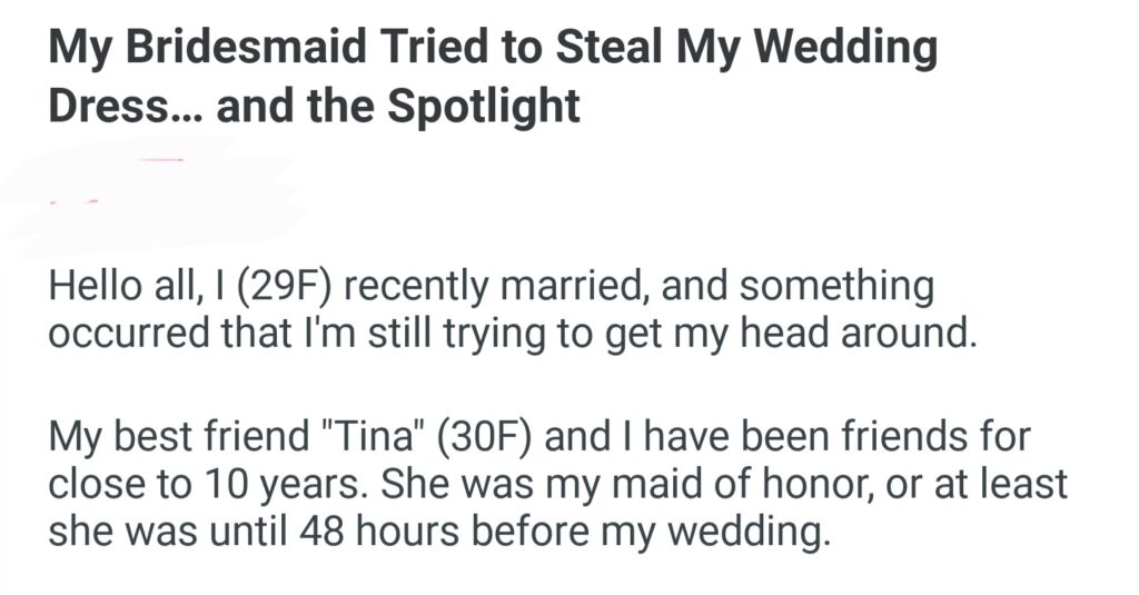 My Bridesmaid Tried To Steal My Wedding Dress