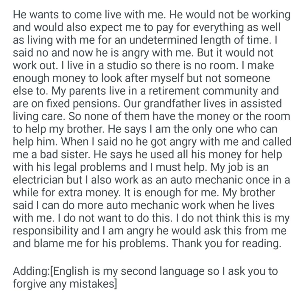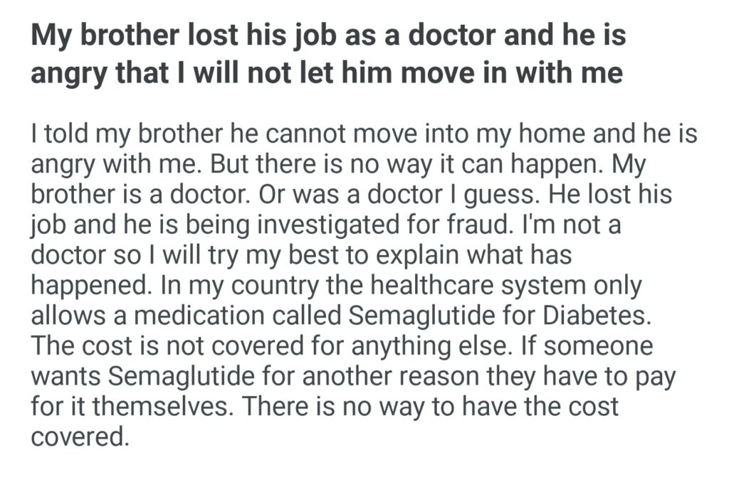 My Brother Lost His Job As A Doctor And He Is That I Will Not Let Him Move In With Me