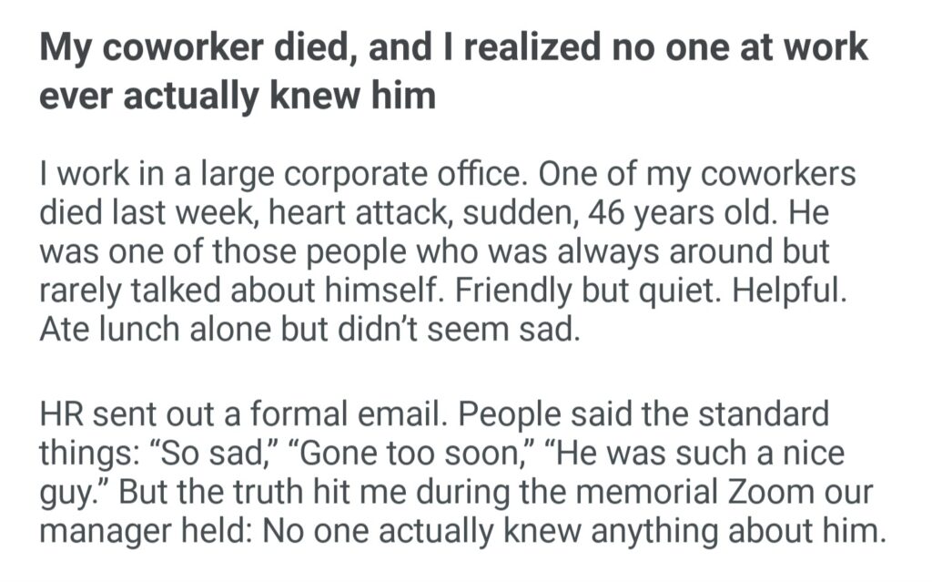 My Coworker And I Realized No One At Work Ever Actually Knew Him