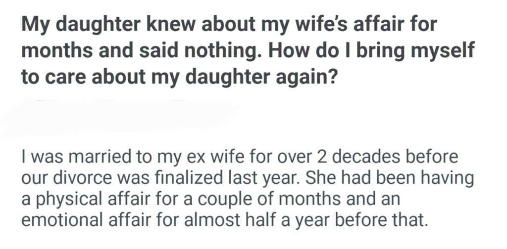 My Daughter About My Wife’s Affair For Months And Said Nothing How Do I Bring Myself To Care About My Daughter Again