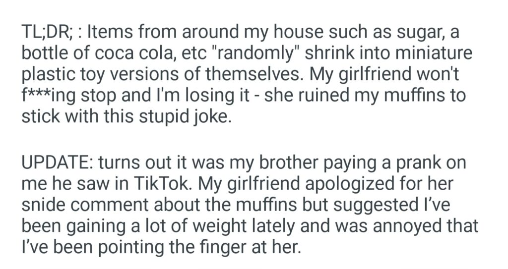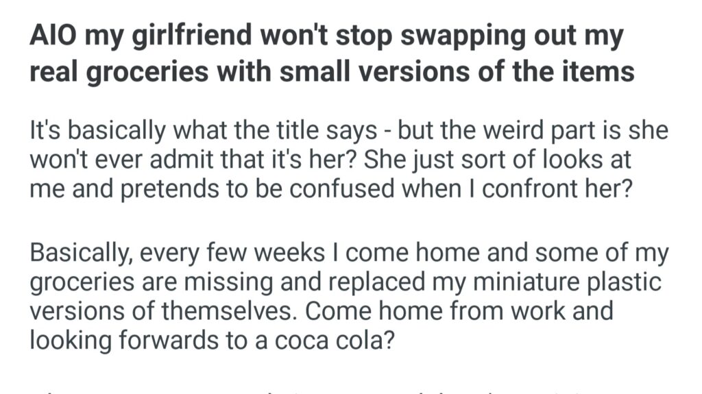 My Girlfriend Won’t Stop My Real Groceries With Small Versions Of The Items