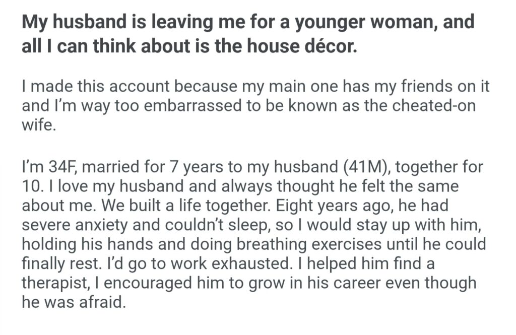 My Husband Is leaving Me For A Younger Woman And All I Can Think About Is The House Decor
