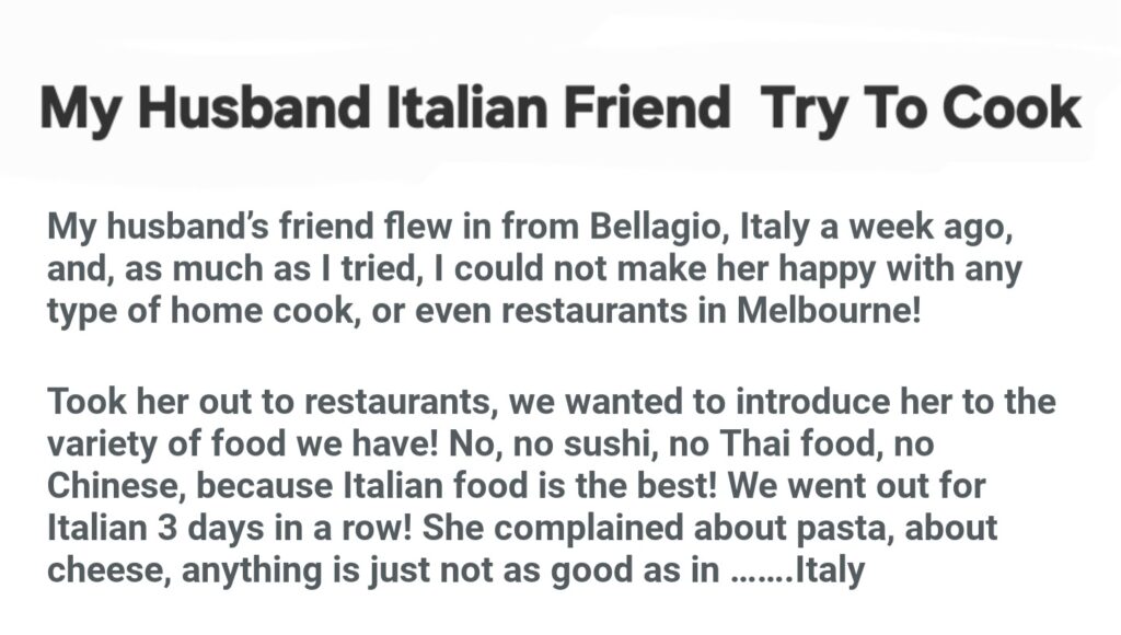 My Husband Italian Friend Try To Cook