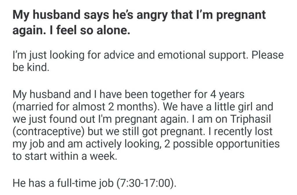 My Husband Says He’s Angry That I’m Pregnant Again