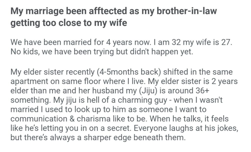 My Marriage Been Affected As My Brother In Law Getting Too Close To My Wife