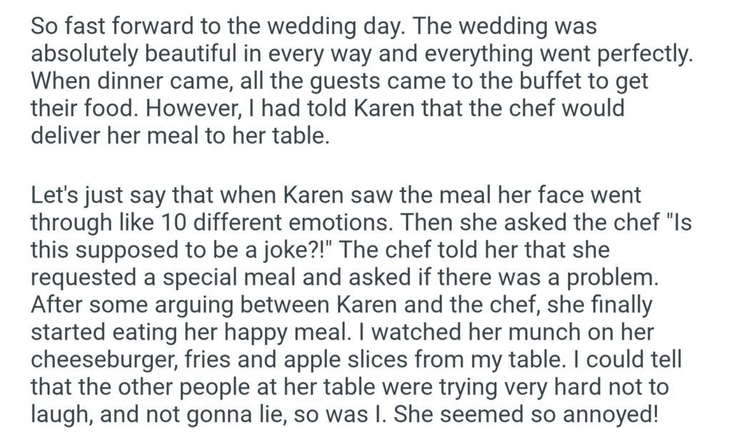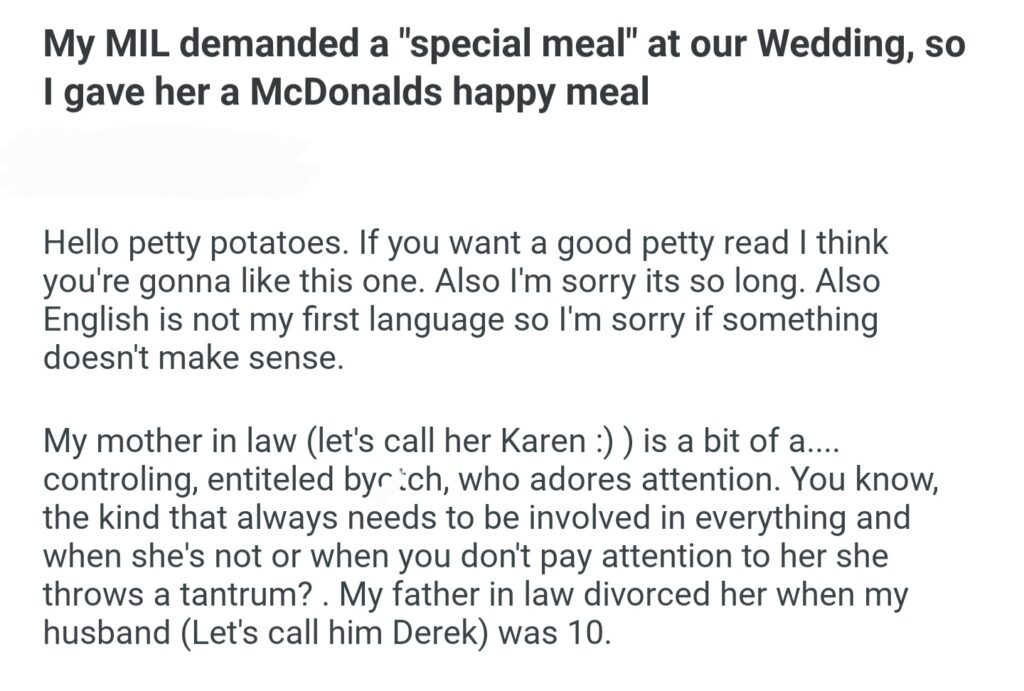 My MIL Demanded A Special Meal At Our Wedding So I Gave Her A McDonalds Happy Meal