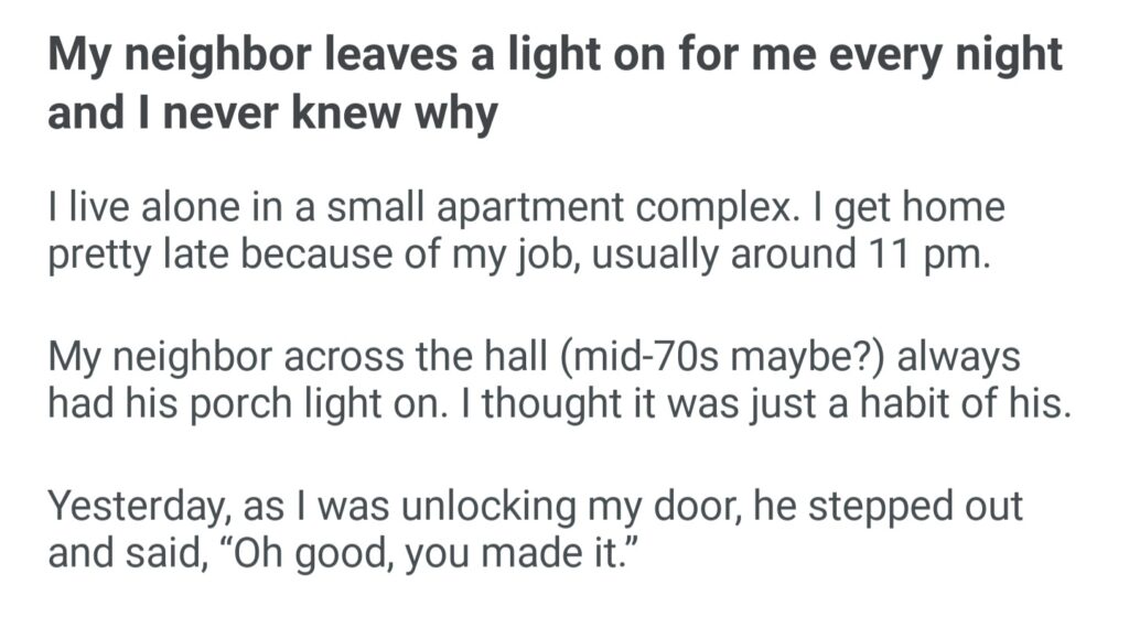 My Neighbor Leaves A Light On For Me Every Night And I Never Knew Why