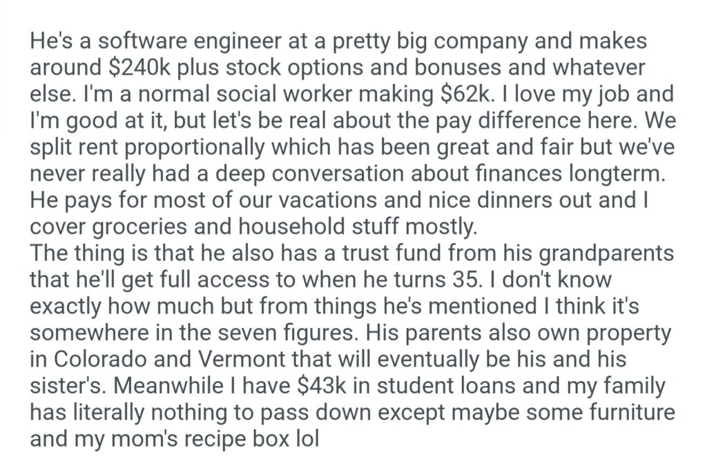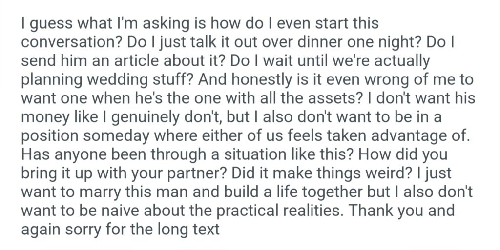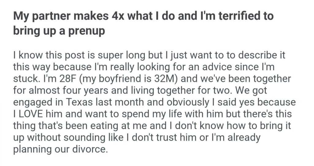 My Partner Makes 4x What I do And I’m Bring Up A Prenup