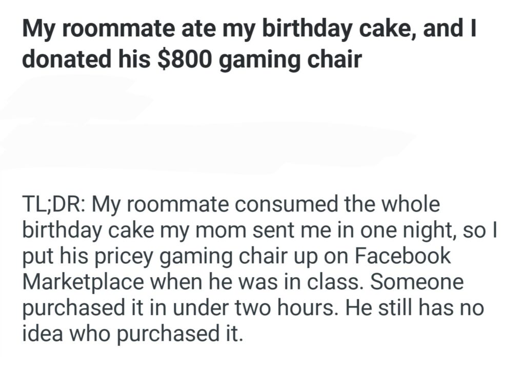 My Roommate Ate My Birthday Cake Revenge