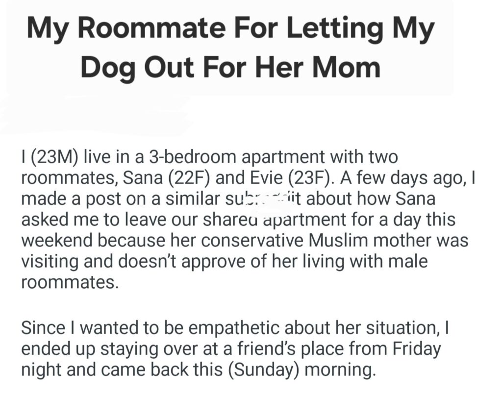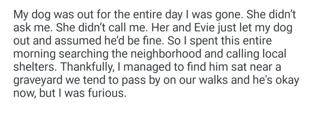 My Roommate For Letting My Dog Out Her Mom