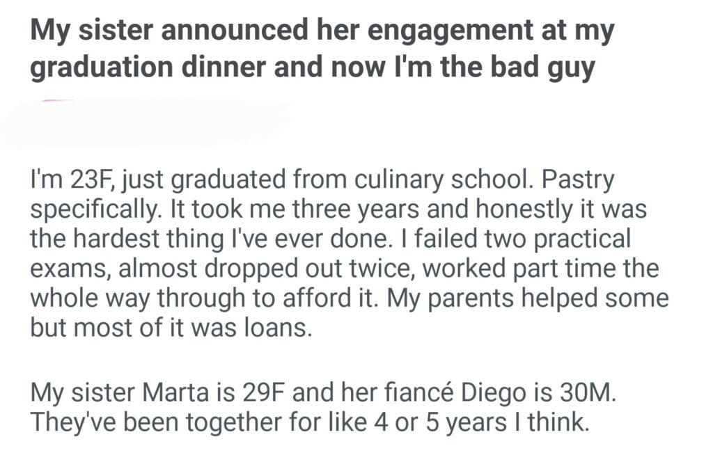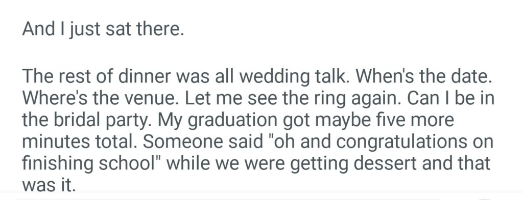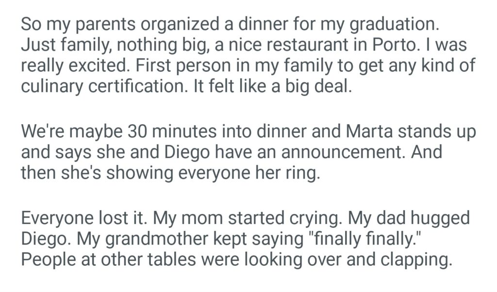My Sister Announced Her Engagement At My Graducation Dinner