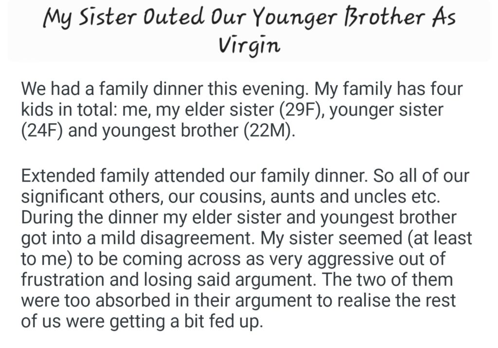 My Sister Outed My Younger Brother As V!rg!n