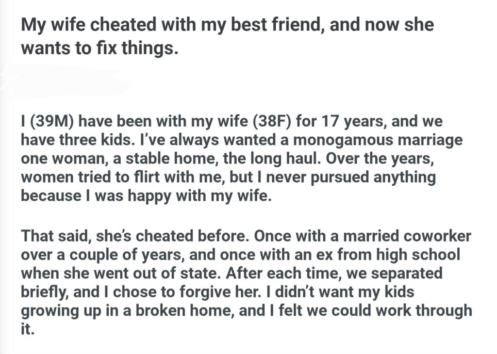 My Wife Cheated With My Best Friend And Now She Wants To Fix Things