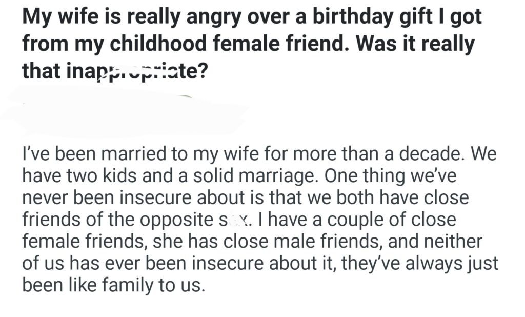 My Wife Is Really Angry Over A Birthday Gift I Got From My Childhood Female Friend