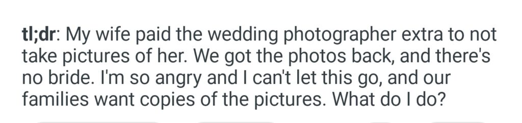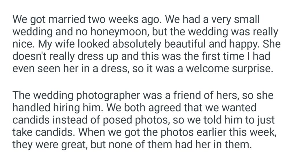 My Wife Paid Our Wedding Photographer Extra To Not Take Any Photos Of Her