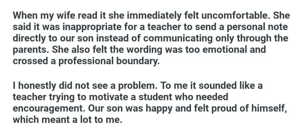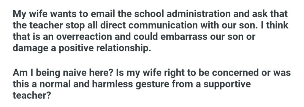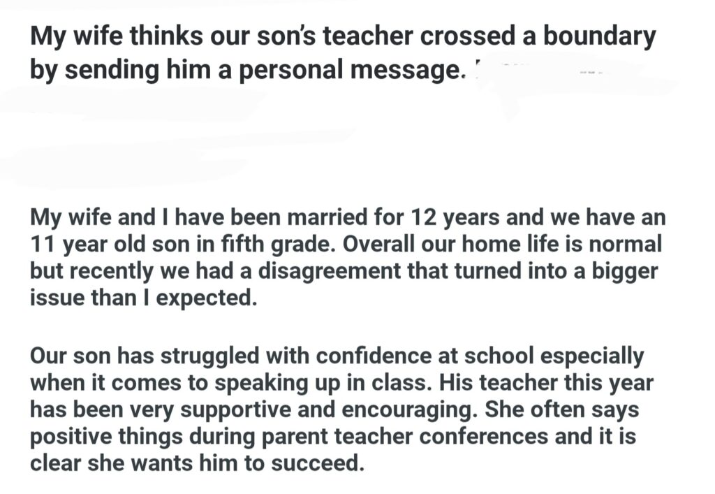 My Wife Thinks Our’s Teacher Crossed A Boundary By Sending Him A Personal Message