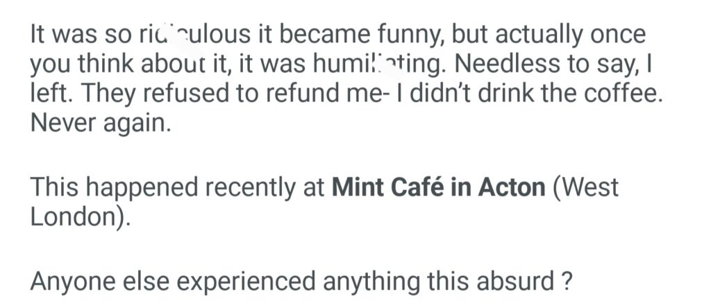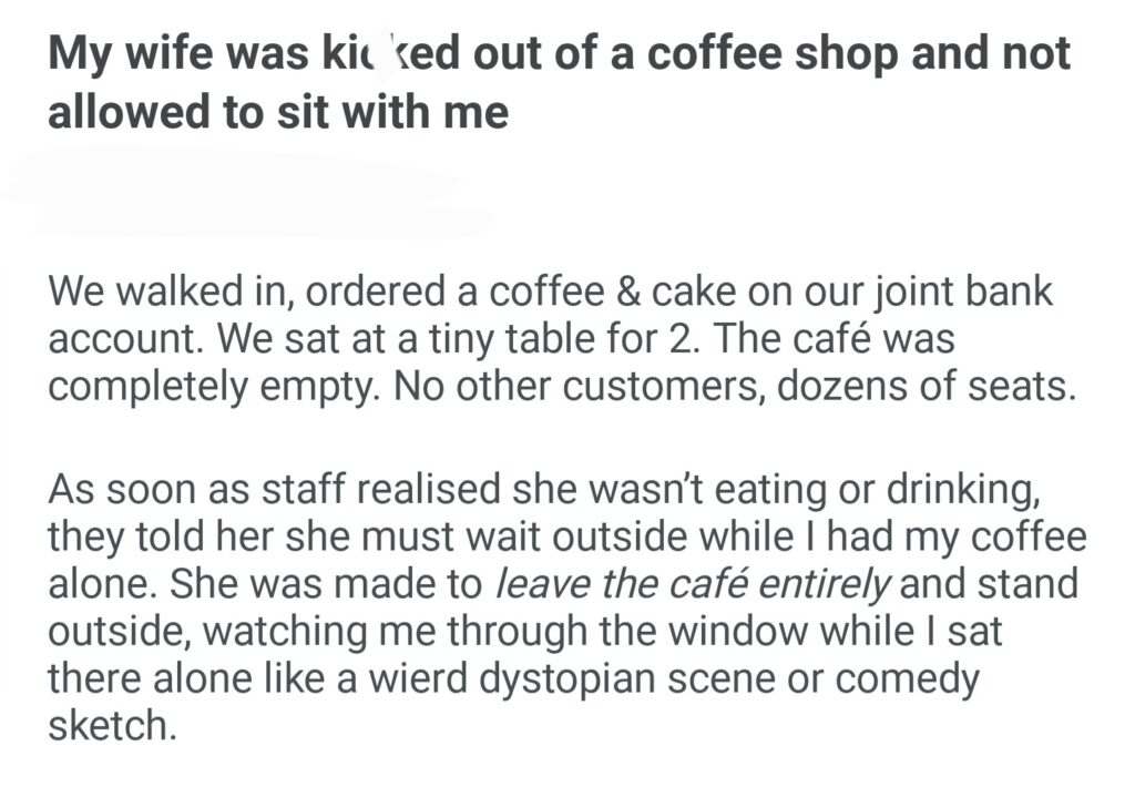 My Wife Was Out Of A Coffee Shop Not Allowed To Sit With Me