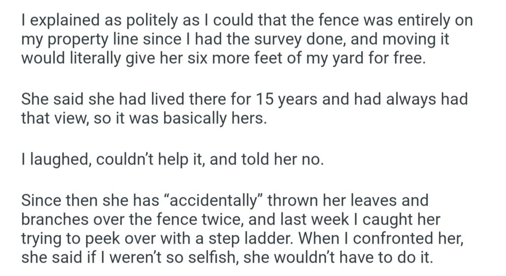 Neighbor Demands I Move My Fence Because Her View Matter More