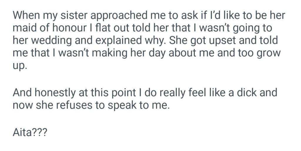 Refusing To Attend My Sister Wedding Because I Didn”t Got My Dream Wedding