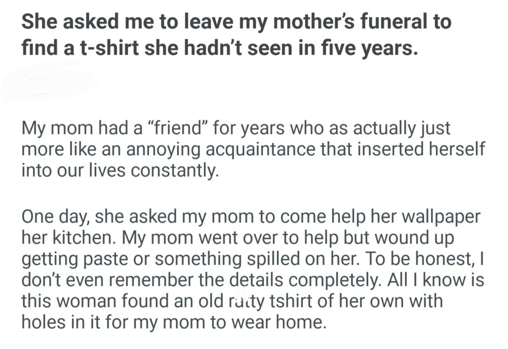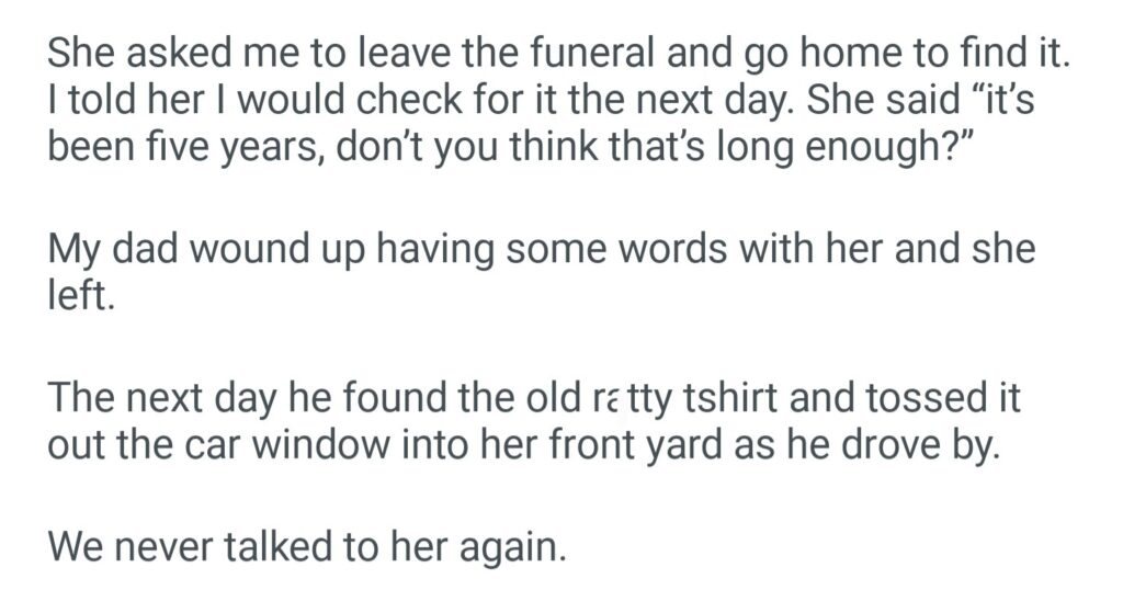She Asked Me To Leave My Mother’s Funeral To Find A T Shirt She Hadn’t Seen In Five Years
