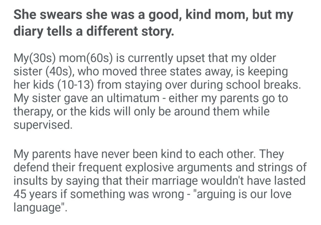 She Swears She Was A Good Kind Mom But My Dairy Tells A Different Story