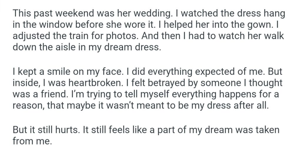 She Walked Down The Aisle In The Gown I’d Been Dreaming Of Since Forever And I Had To Smile Through It