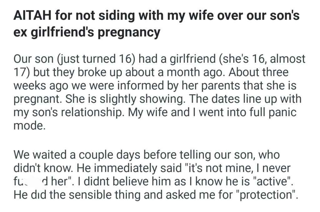 SIding With My Wife Over Our Son’s Ex Girlfriend’s Pregnancy
