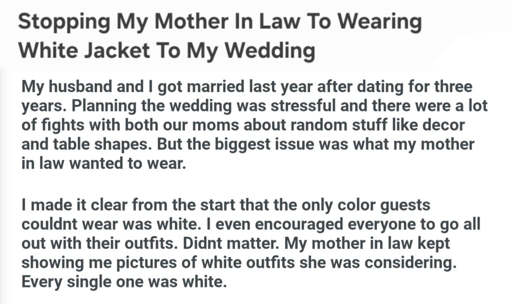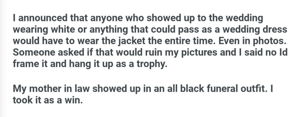 Stopping My Mother In Law To Wearing Jacket To My Wedding
