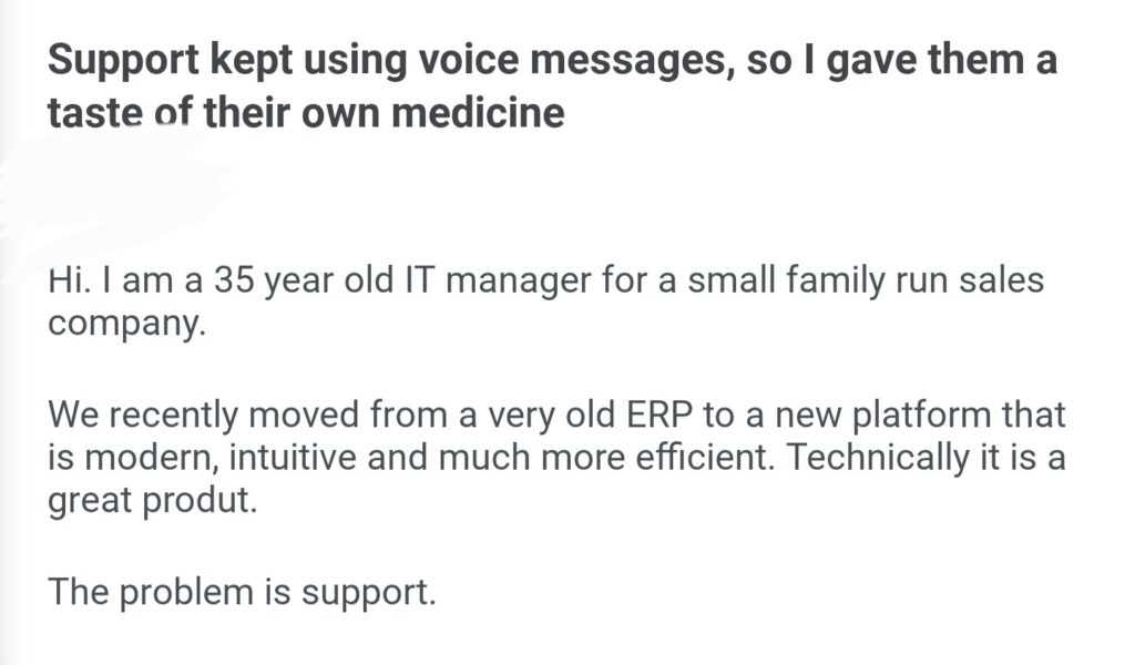 Support Kept Using Voice Messages So I Gave Them A Taste Of Their Own Medicine