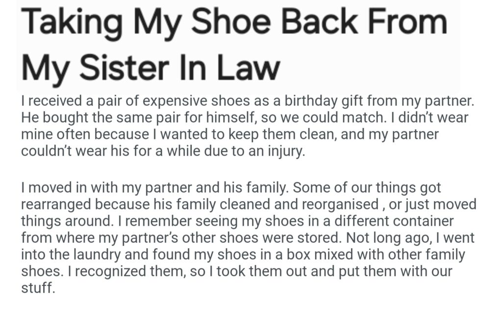 Taking My Shoe Back From My Sister In Law