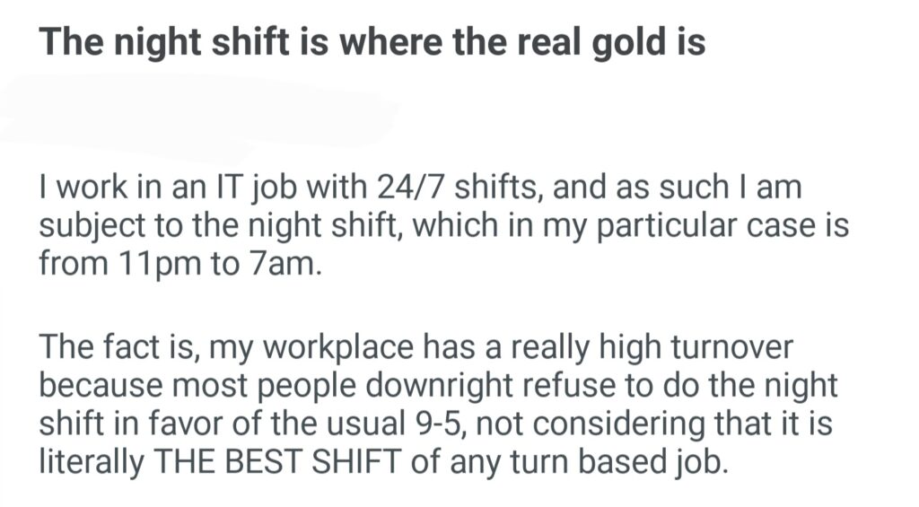 The Night Shifts Is Where The Real Gold Is
