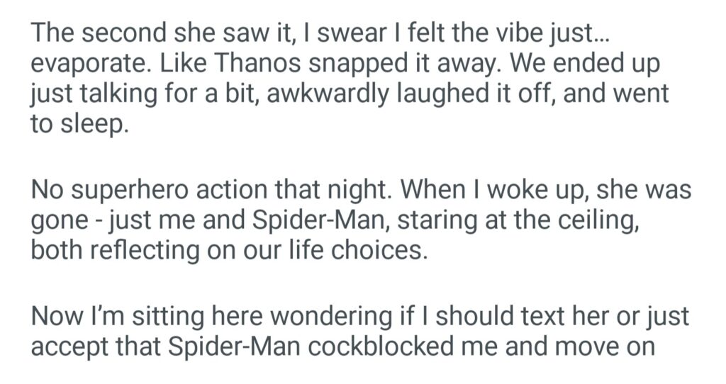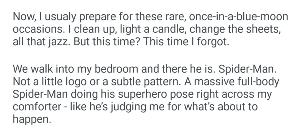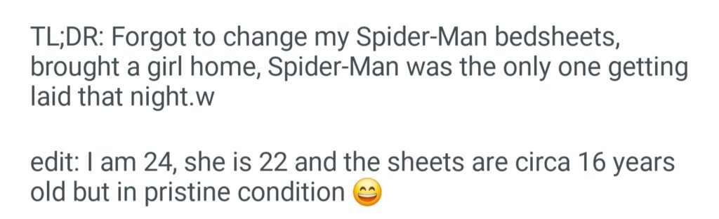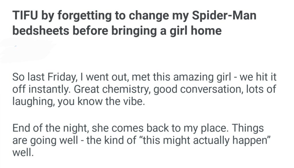 TIFU By Forgetting To Change My Spider Man Bedsheet Before Bringing A Girl Home