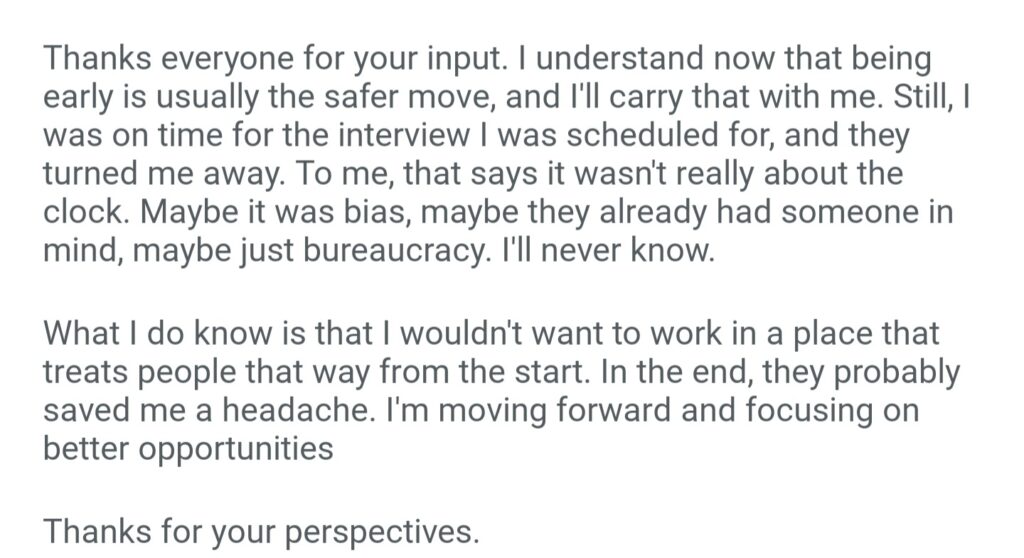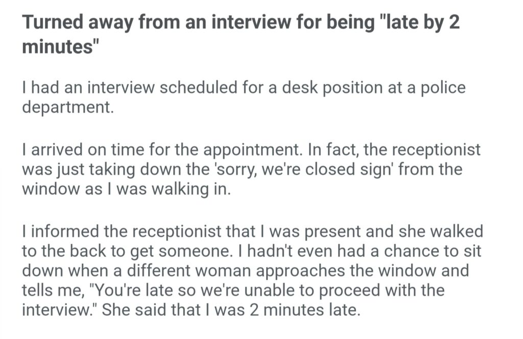 Turned Away From An Interview For Being Late By 2 Minutes