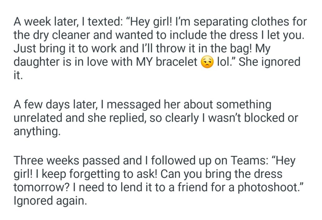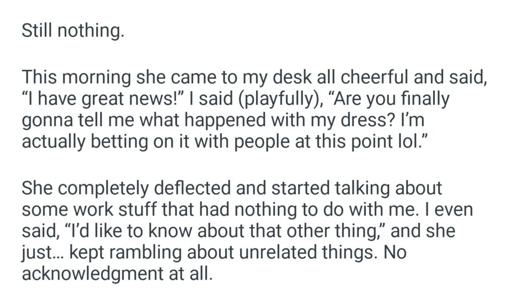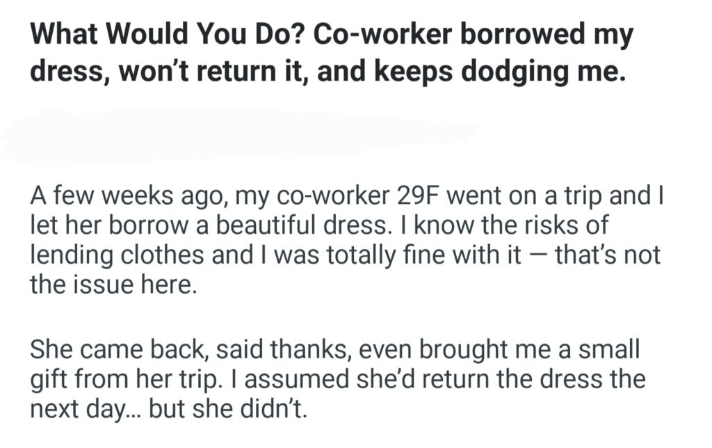What Would You Do Cow Worker Borrowed My Dress Won’t Return It