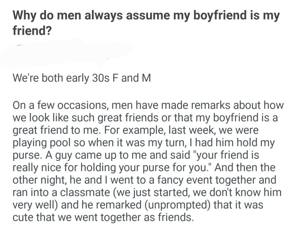 Why Do Men Always Assume My Boyfriend Is My Friend
