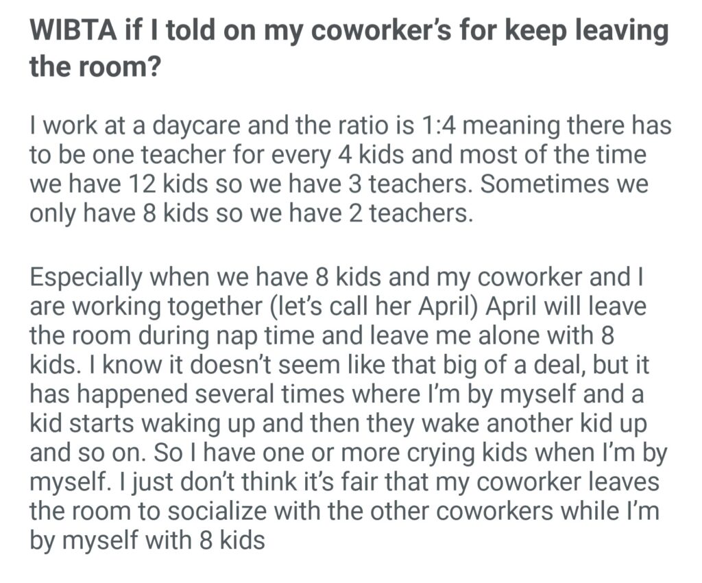 WIBTA If I Told On My Coworker For Keep Leaving The Room