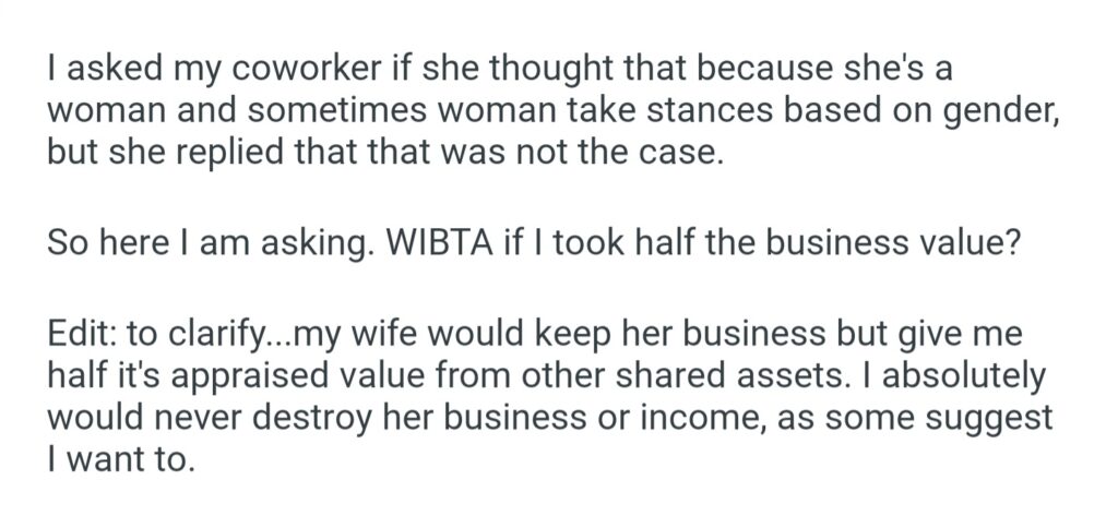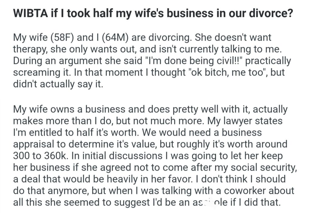 WIBTA If I Took Half My Wife’s Business In Our Divorce