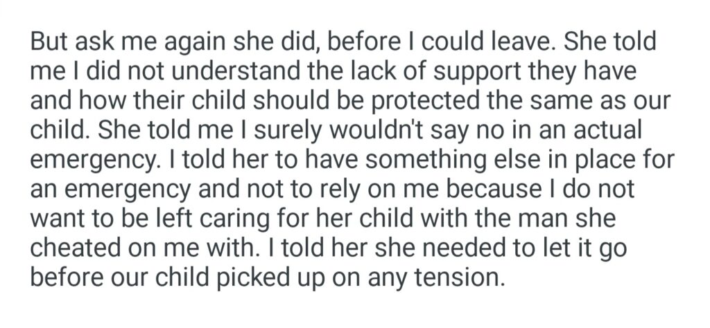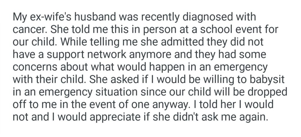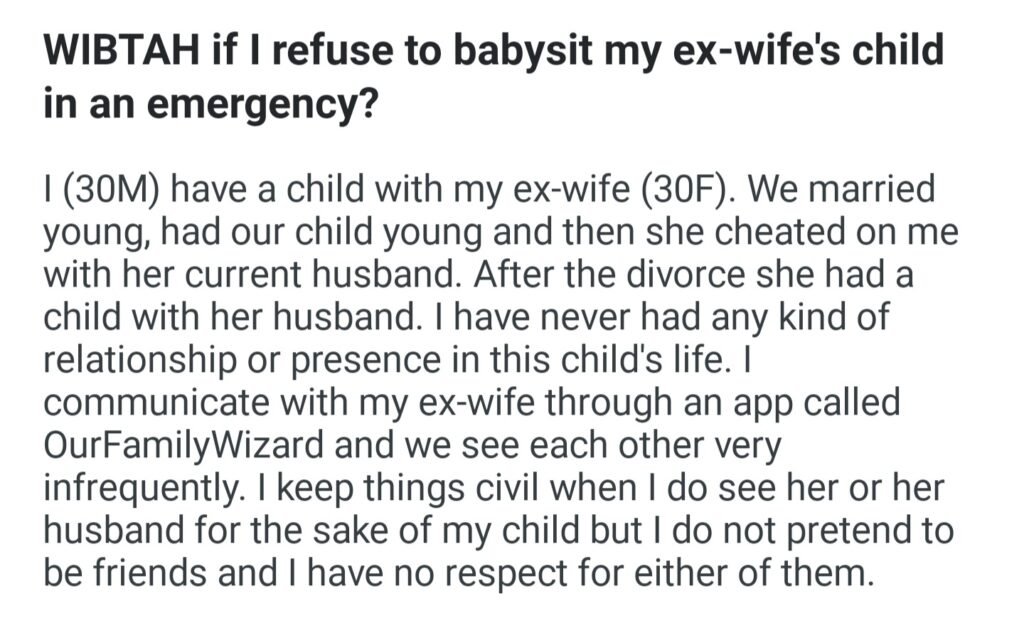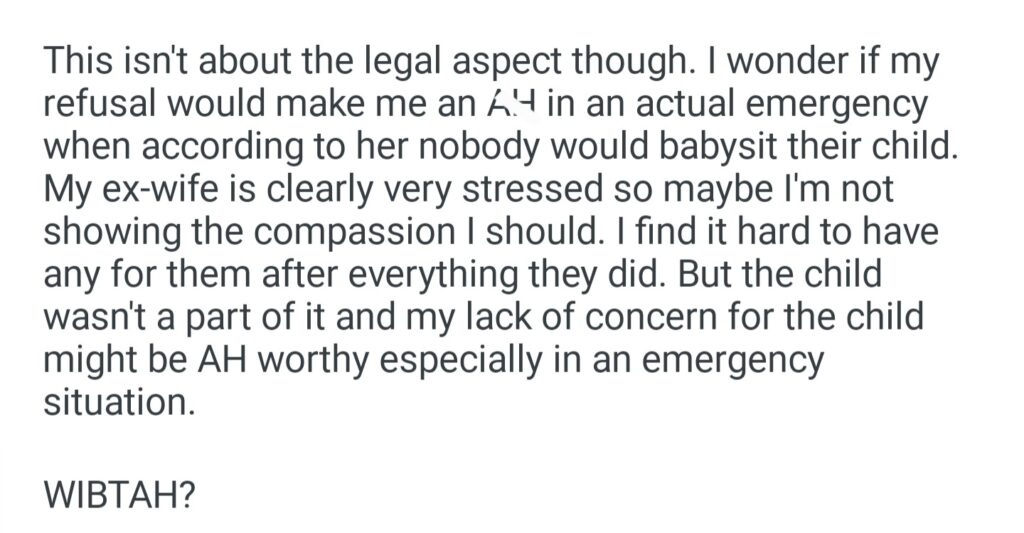 WIBTAH If I Refuse To Babysit My Ex Wife’s Child In An Emergency