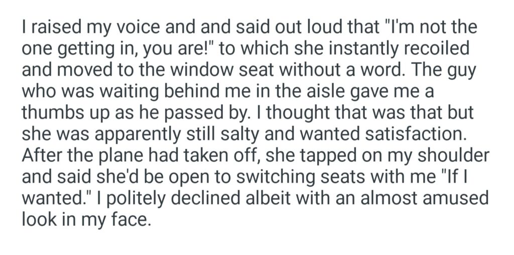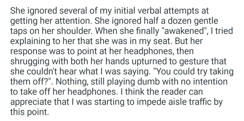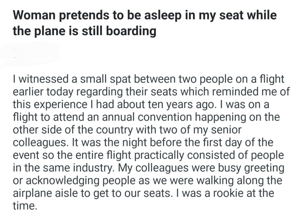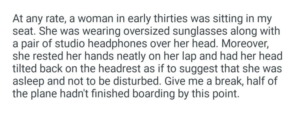 Woman Pretends To Be Asleep In My Seat While The Plane Is Still Boarding